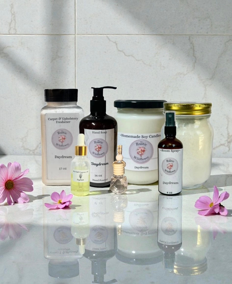 At The Rustic Wildflower, we offer a wide range of handmade, homemade products for your home and personal care. From soy candles and air fresheners to natural homemade skin care and unique home decor, our southern-inspired goods are crafted with love and attention to detail. Experience the charm of the South with our one-of-a-kind, uniquely handcrafted products.
